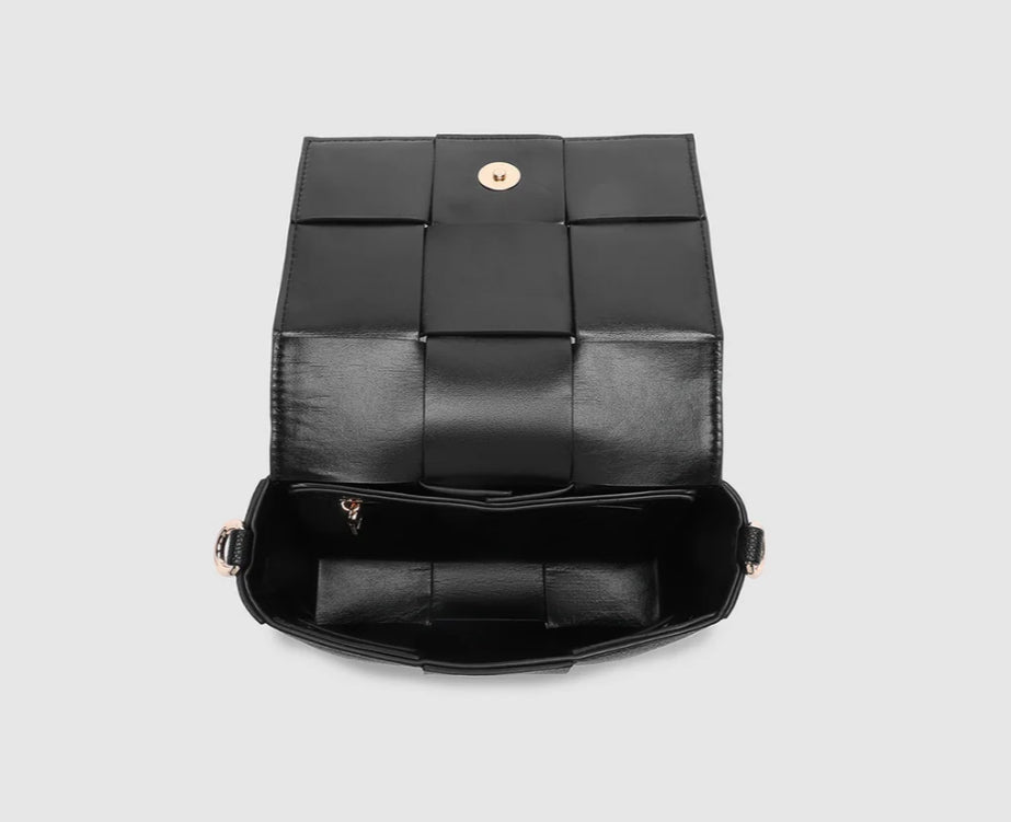 The Josephine Vanilla Crossbody Bag is a statement in both texture and versatility, designed to deliver effortless elegance from day to night. Crafted from woven vegan leather panels, she offers a modern twist on classic texture, adding a refined edge to everyday styling. This women’s woven handbag features a structured silhouette with a magnetic closure to keep your essentials secure, while light gold hardware lends a polished finish. With two interchangeable straps: a sleek vegan leather crossbody and a gold, short shoulder chain strap - Josephine Vanilla adapts to suit your style. Wear her crossbody for hands-free ease, on the shoulder for elevated occasions, or remove both straps for a sophisticated clutch moment. Thoughtfully designed for both function and flair, Josephine Vanilla is the perfect plus-one for long lunches, late nights, and everything in between.