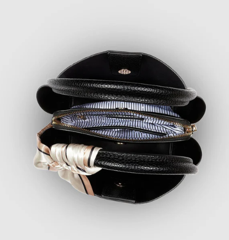 The Louenhide Steffie Black Mini Tote Bag is an easy-to-compliment silhouette that will become a staple in your winter wardrobe. Small and elegant, yet spacious enough to carry your everyday must-haves, this women's crossbody bag will keep your essentials in order with the three internal compartments. Offering a versatile wardrobe transformation, simply attach the additional crossbody strap for an effortless over the shoulder, hands-free style, or carry her by the top handles for an elevated going-out style. To further enhance your winter style, this handbag features a braided silk-feel scarf over the handle to bring a touch of sophistication to your ensemble.