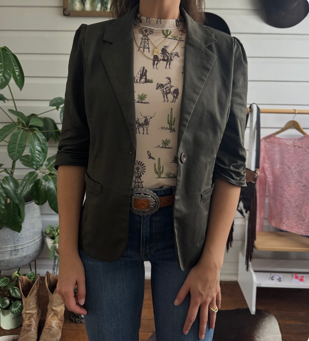 - 3/4 ruched sleeves