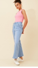 These high-waist utility jeans combine effortless style with all-day comfort. Featuring a flattering wide-leg cut, patch front pockets, and seam detailing down the legs, they bring a modern twist to classic denim. The light wash and structured silhouette make them easy to dress up or keep casual with a simple tee and sneakers.