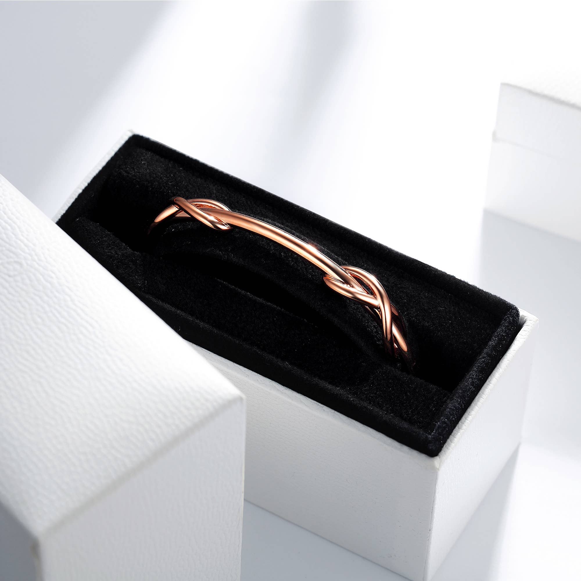 Double Infinity Cuff Bangle MYJS Rose Gold Plated wear this bangle alone or stacked for maximum impact. nickel free making it hypoallergenic.