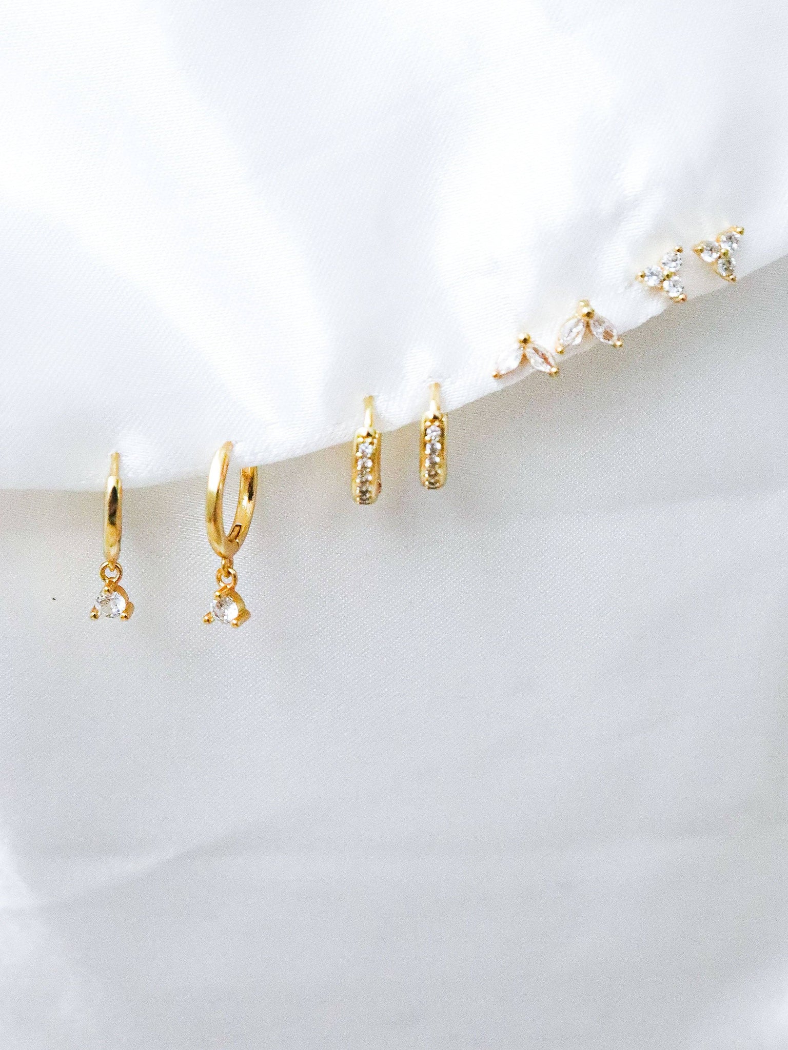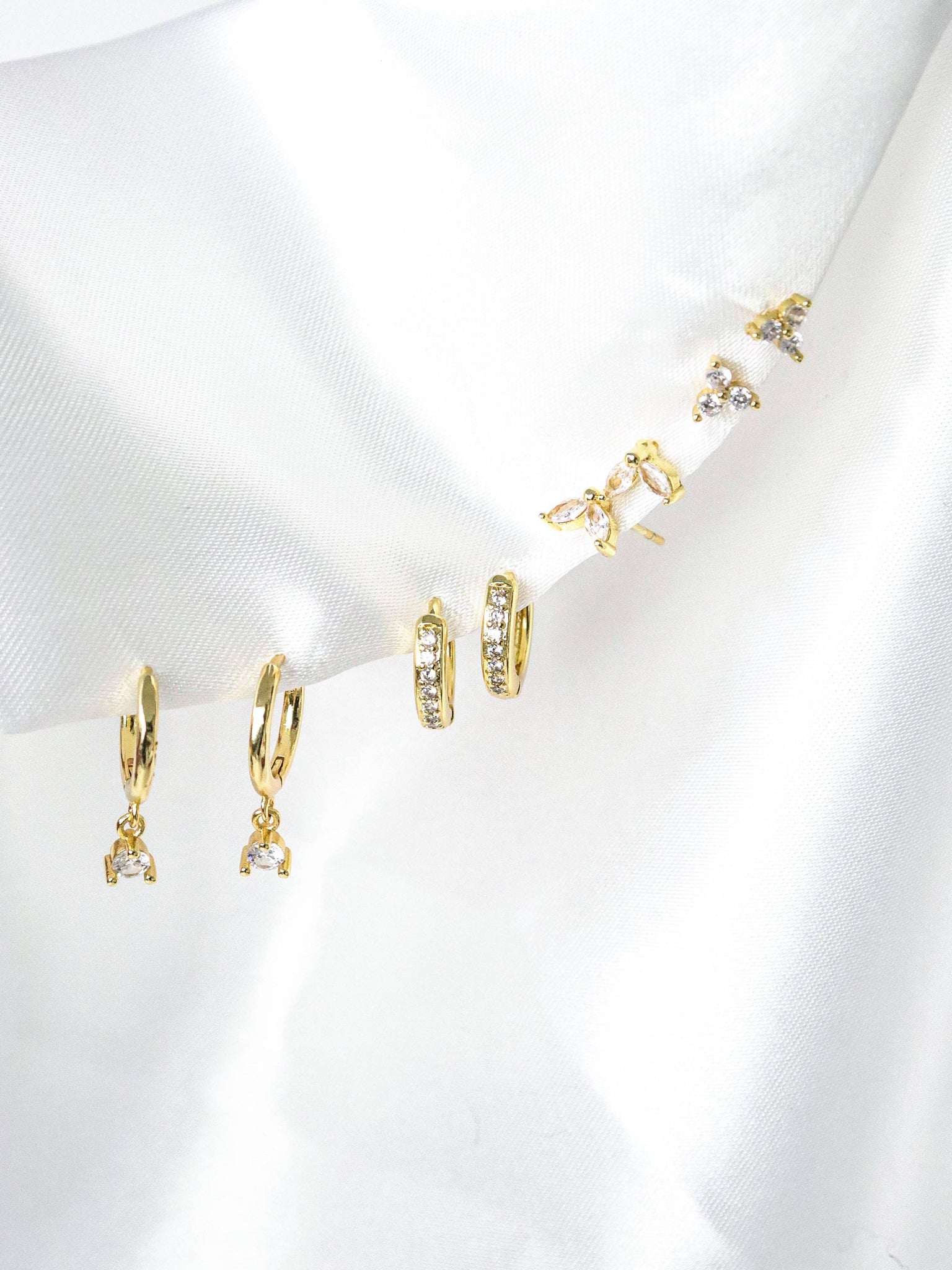 Add effortless elegance to your everyday style with this stunning 3-piece earring set from Lustre & Sage. Perfect for mixing, matching, layering—or gifting! Featuring 18K Coated Gold and Diamanté.