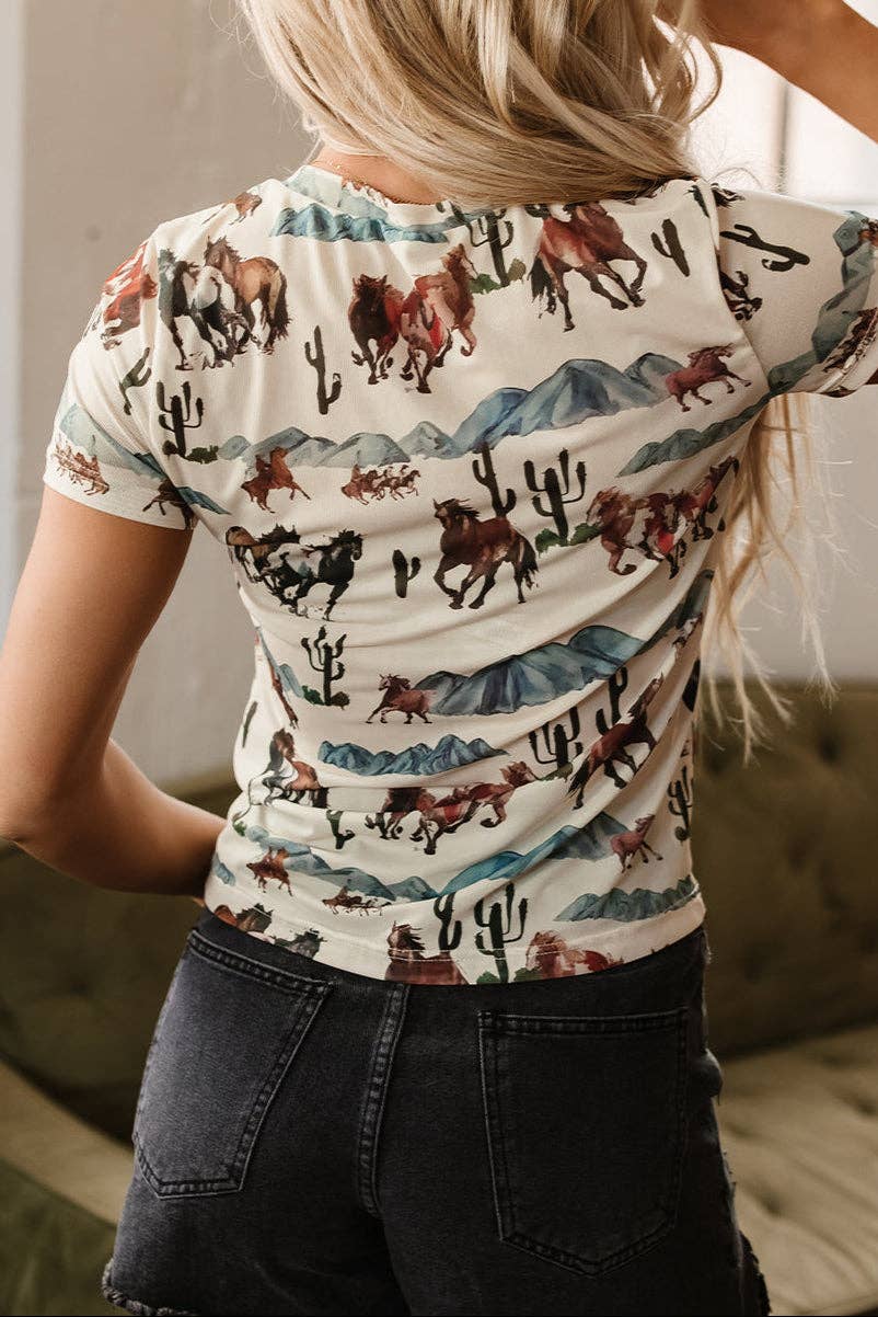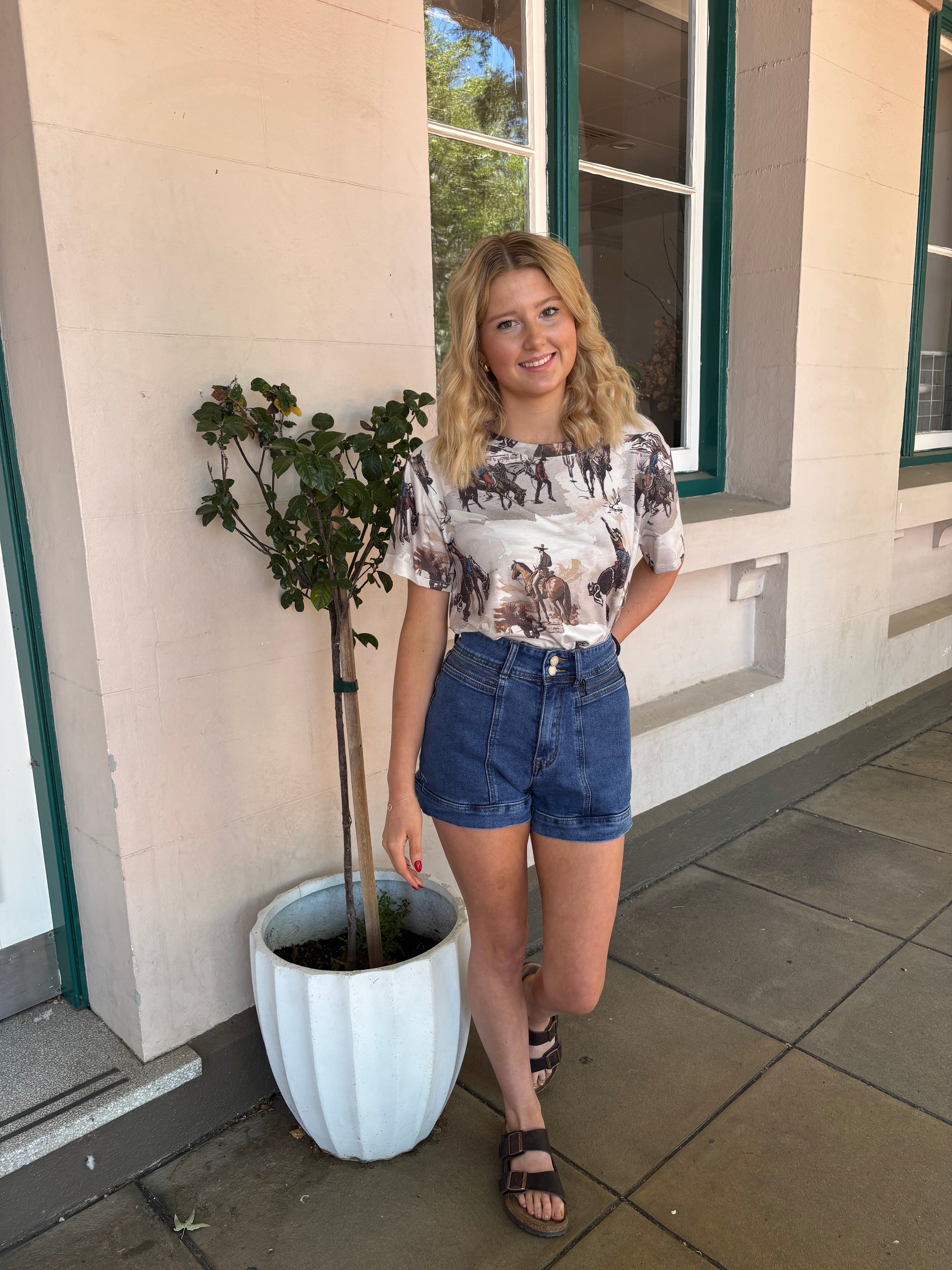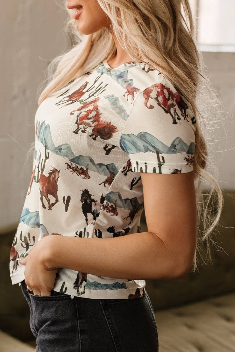 LILI WESTERN PRINT RELAXED FIT SHORT SLEEVE T-SHIRT