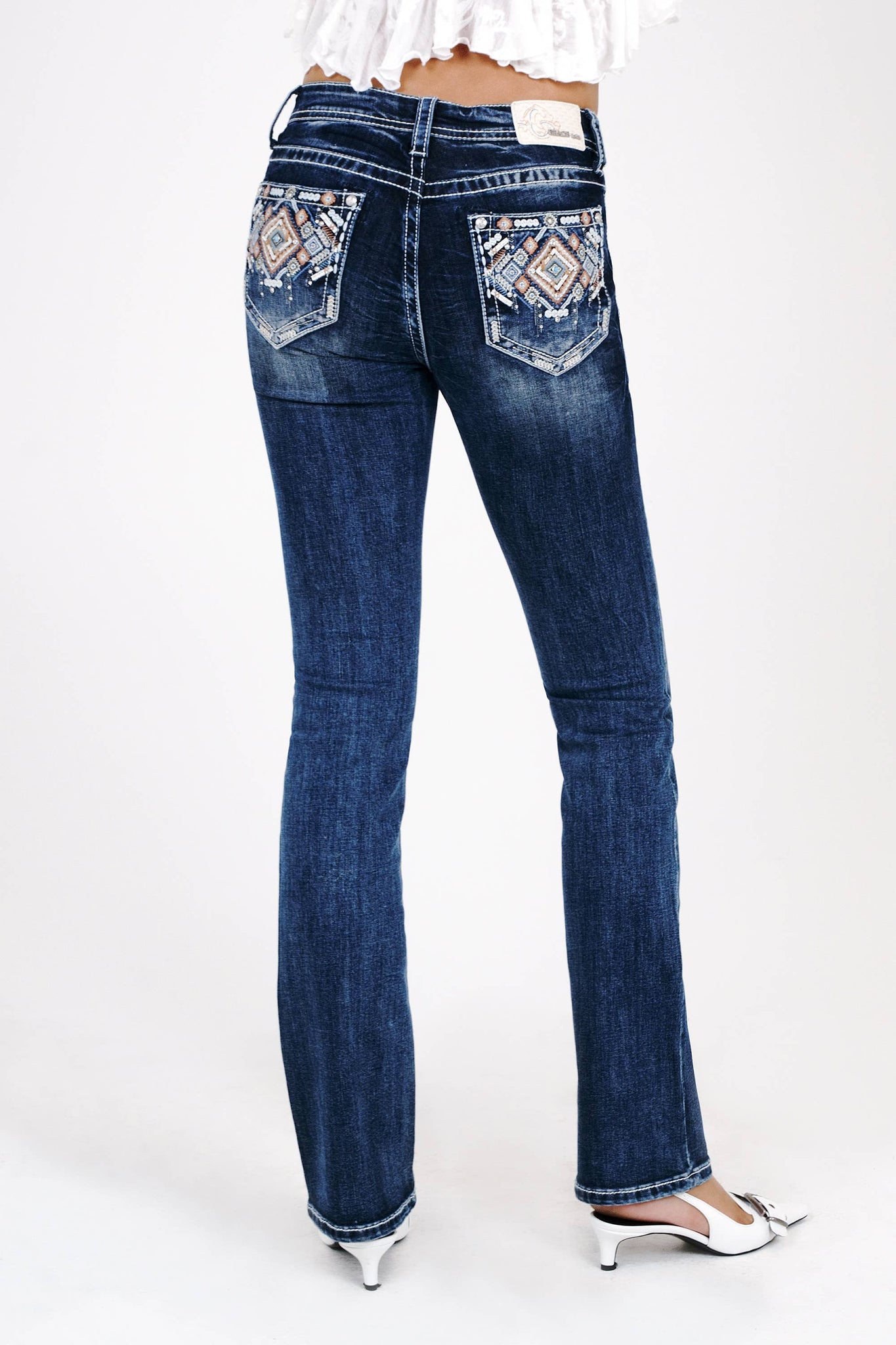 Grace in LA Aztec Modify Mid-Rise Boot Cut inseam 30"