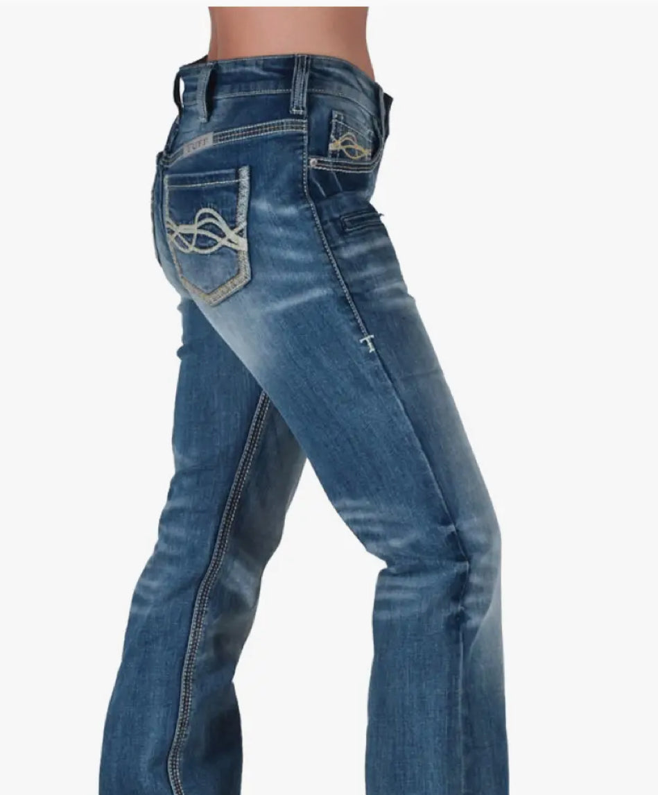 Dark, Classy & Slenderizing is exactly what these New “Platinum” High Waist Relaxed Fit Bootcut jeans are! Fans are loving this fit, and these are sharp with the sleek welt front pockets that are fully functional as they are 6 ½ deep. Overall gold stitching really gives them something special and pair up well with all of our pullover button ups. They are a mid-weight, Tuff Flex, medium stretch that are fitting true to size.