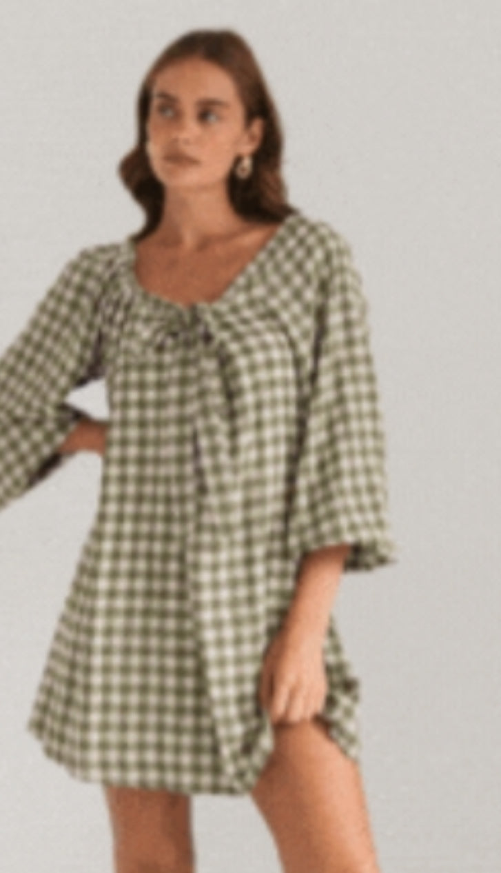 Country Check Mini Dress- olive