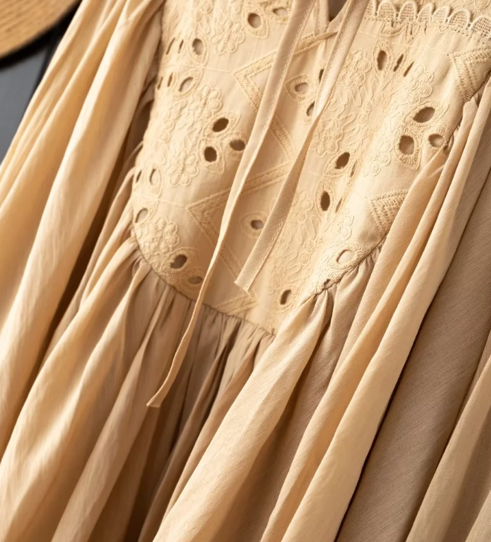 Fabric: 100% Cotton Size: Free One Size Bust-41.5' Sleeve Length 23' Cloth Length 26.3'