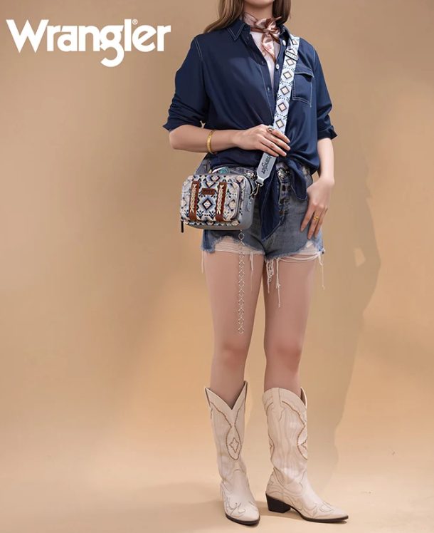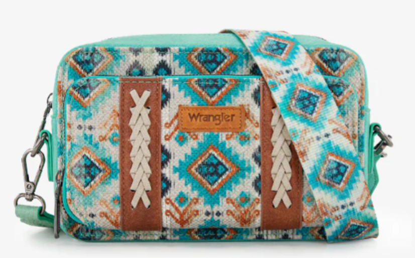 Wrangler Southwestern Dual Sided Print Crossbody Purse with Wallet - Green