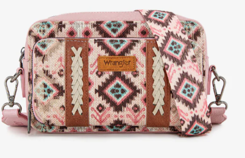 Wrangler Southwestern Dual Sided Print Crossbody Purse with Wallet - Dark Pink