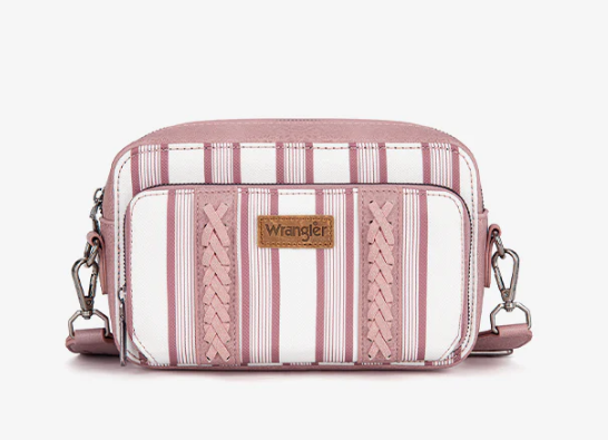 Wrangler Stripe Printed Crossbody Purse with Wallet Compartment - Pink