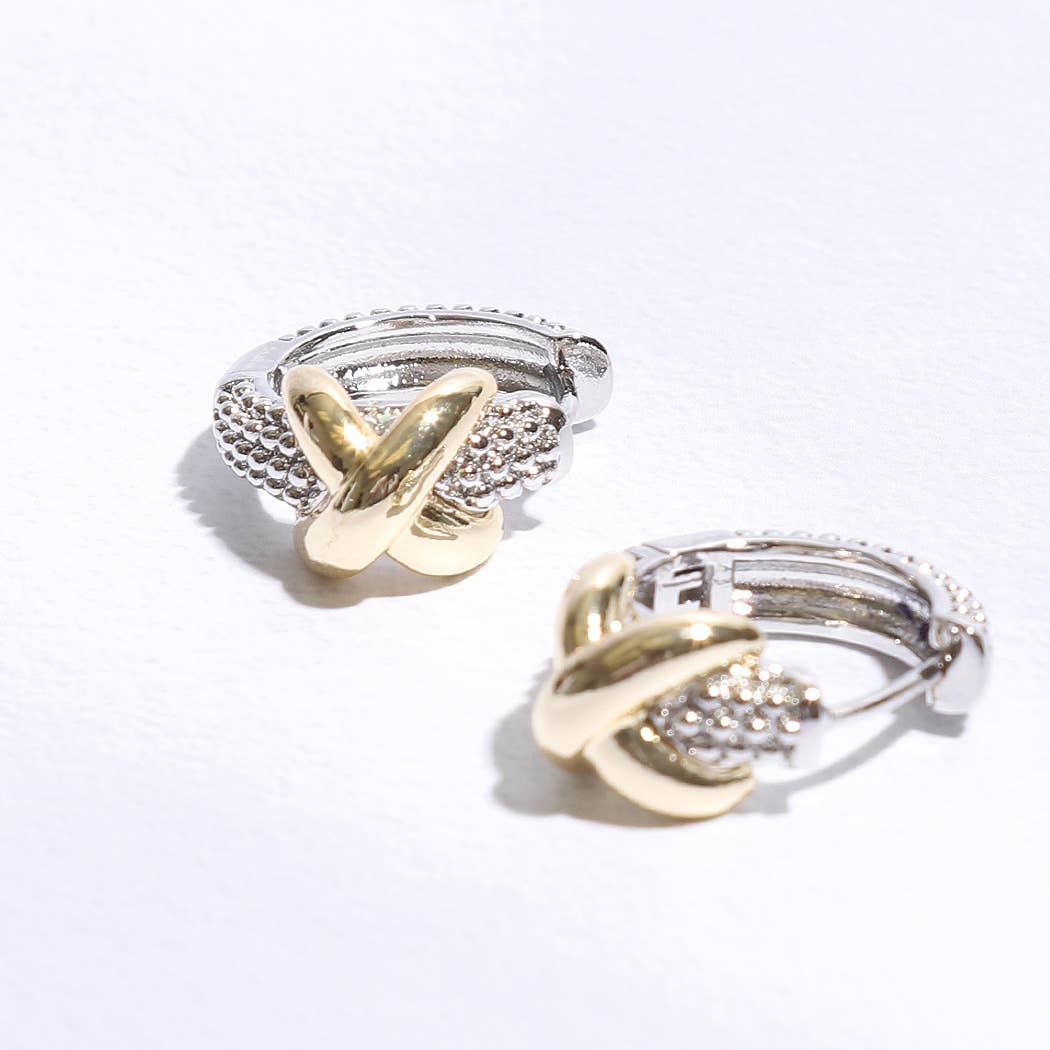 Criss Cross Silver Gold Pave Huggie Earrings